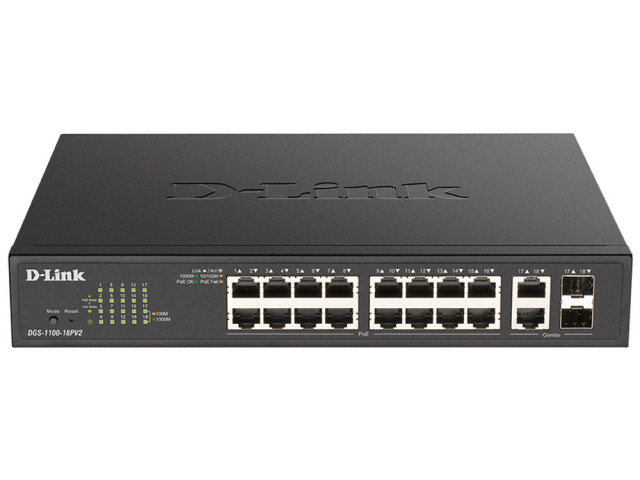 D-Link DGS-1100-18PV2 Netzwerk-Switch Managed L2 Gigabit Ethernet (10/100/1000) Power over Ethernet (PoE) 1U Schwarz