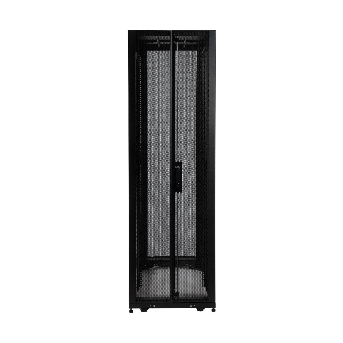 Die umkehrbare vordere Tür, die geteilten hinteren Türen und die halbhohen Seitenverkleidungen lassen sich sicher verschließen, um Beschädigungen, Manipulationen oder Diebstahl zu verhindern. Die Türen, Seitenwände und die Oberseite sind für eine schnelle Entriegelung ausgelegt, sodass der Zugriff auf angeschlossene Geräte und Verkabelungen mit geringem Aufwand möglich ist. Praktische Zugangsöffnungen von oben und ein offener Boden ermöglichen eine einfache Kabelführung durch den Schrank. Die belüfteten Türen ermöglichen einen großzügigen Luftstrom von vorne nach hinten, um Ihre Geräte kühl und funktionsfähig zu halten.