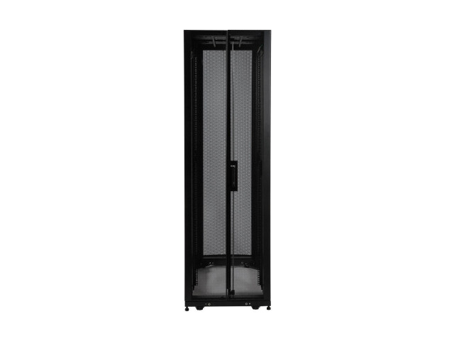 Dieses SmartRack® 42-HE-Rackgehäuse ist 1219 mm tief und für Netzwerkkabelschränke, Einzelhandelsstandorte, Klassenzimmer, Back-Offices und andere Bereiche mit wichtigen IT-Geräten zur Rack-Montage konzipiert. Dies ermöglicht die Installation von Geräten mit hoher Dichte, zusätzlichen Platz für das Kabelmanagement und Raum für die Entfernung von Hot-Swap-Netzteilen von der Rückseite der montierten Geräte. Das SR42UBDP48 besteht aus hochbelastbarem Stahl mit einer langlebigen schwarzen Pulverbeschichtung und verfügt über eine maximale stationäre Tragfähigkeit von 3.500 lbs (1.588 kg) und eine maximale rollende Tragfähigkeit von 2.250 lbs (1.020,6 kg).