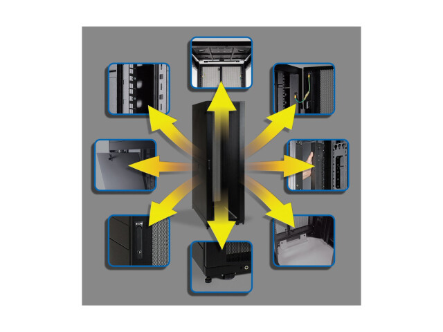 Das SR42UBG SmartRack 42U Rack-Gehäusekabinett mit Standardtiefe eignet sich ideal für die Unterbringung von Rackgeräten von 19 Zoll (482,6 mm) nach EIA-Standard in Netzwerksc ...