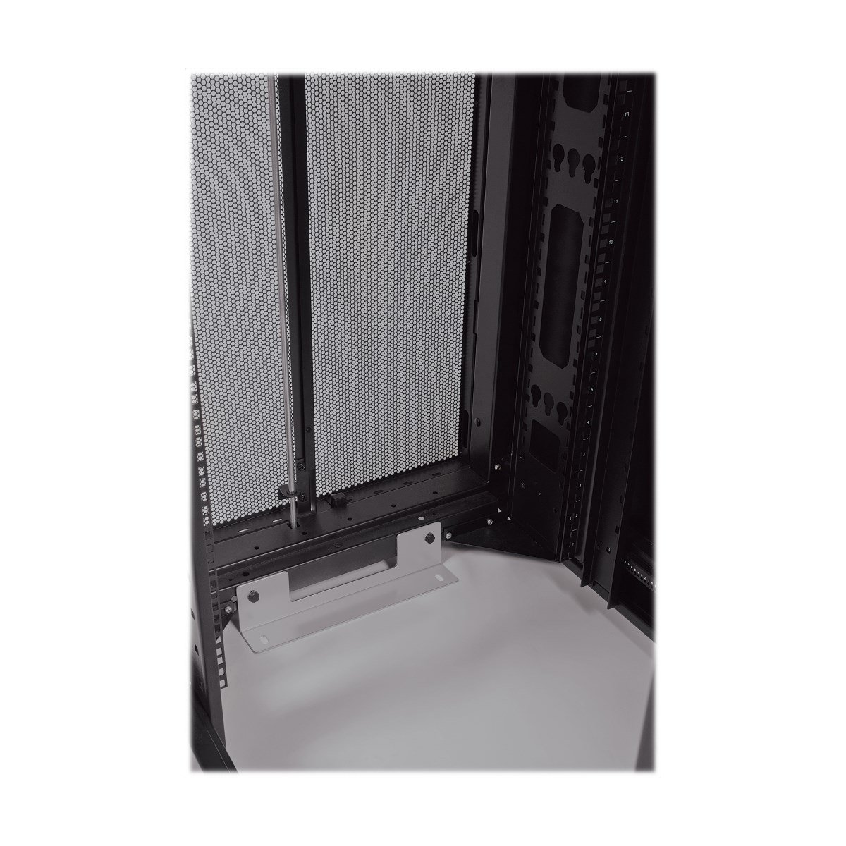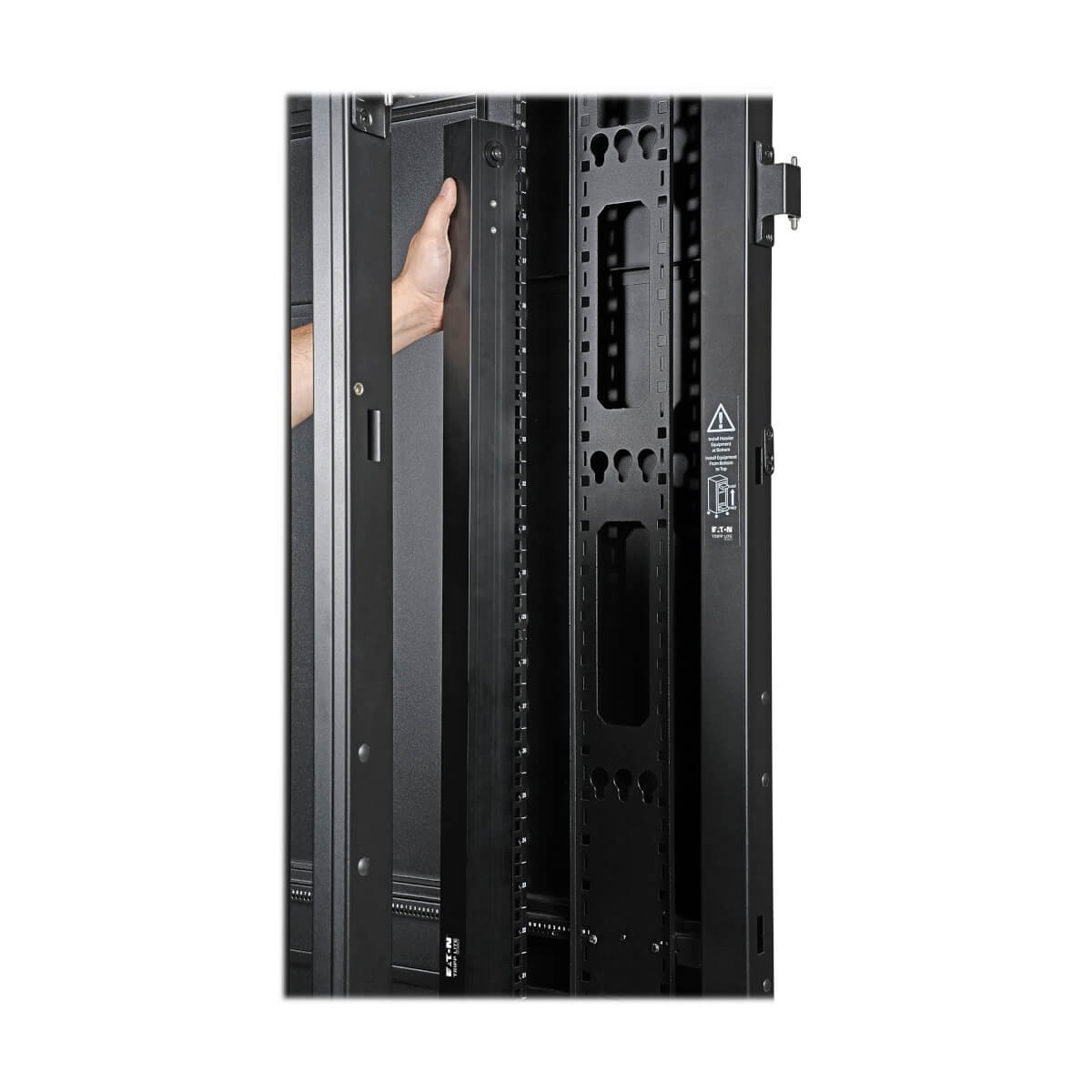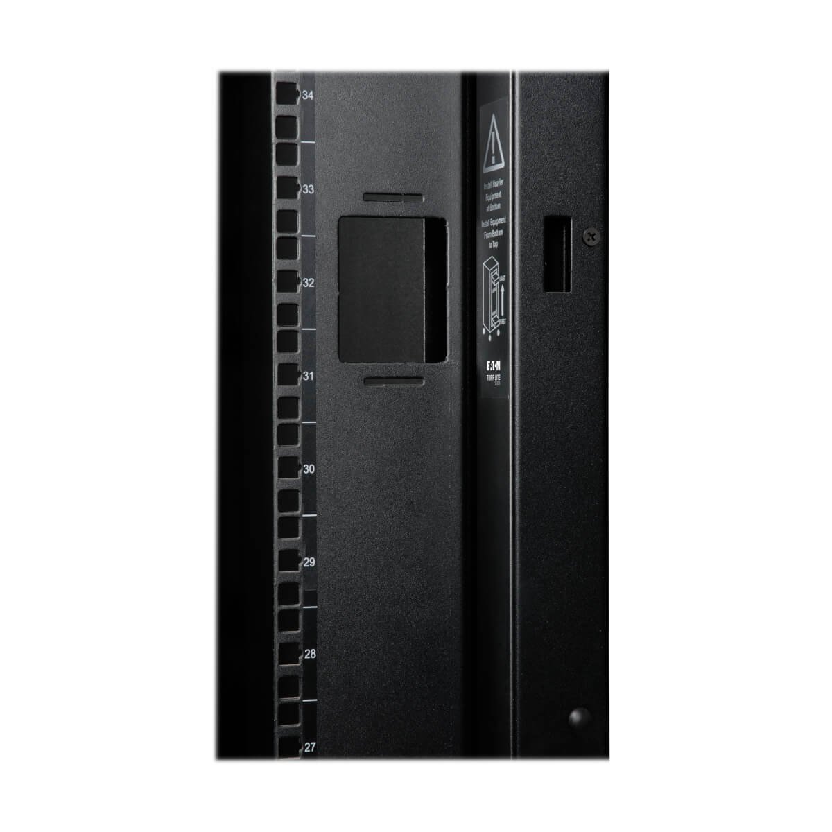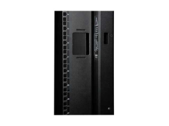 Im SR48UBWD werden 3.500 Pfund (1.588 Kilogramm) schwere 19-Zoll-Standard-Rack-Geräte in 48U untergebracht. Seine vorderen und hinteren vertikalen Schienenpaare haben quadratische Befestigungsbohrungen, die in Viertelzoll-Schritten von 4 (101,6 mm) bis 37 Zoll (939,8 mm) einstellbar sind. Die Einstellung erfolgt schnell, und ein übersichtlicher Tiefenindex gewährleistet eine konsistente Schienenplatzierung, ohne dass zeitraubende Messungen erforderlich sind. Jeder Rackplatz innerhalb des Gehäuses ist zur besseren Übersicht nummeriert.