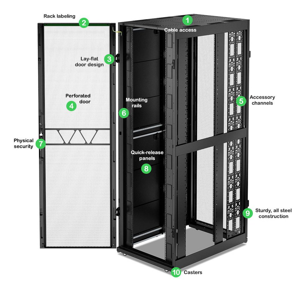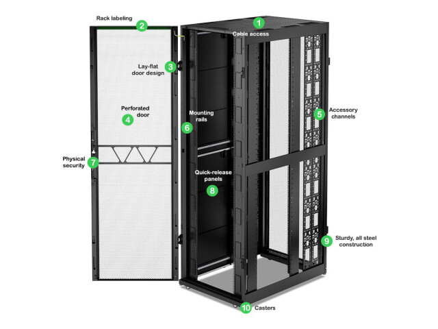 Das neu gestaltete APC NetShelter SX Rack-Gehäuse - zuverlässig, vielseitig und für anspruchsvolle IT-Umgebungen konzipiert. Mit größeren Ladekapazitäten und mehr Platz für Geräte ermöglicht es eine noch dichtere Rechenleistung. Wählen Sie zwischen Standard-, Breit-, Extrabreit- und Large-Depth-Optionen. Der moderne Look ist perfekt für Colocation und kundenorientierte Unternehmen. Vereinfachen Sie Ihre Arbeitsabläufe durch einfachen Zugang zu Kabeln und Geräten, und optimieren Sie den Luftstrom und das Kabelmanagement mit unserem umfangreichen APC-Zubehör. Die 270° (180° angereiht) öffnenden Türen halten die Gänge frei, während die 80%ige Türperforation den Luftstrom für Hochleistungsserver verbessert. Dank seiner Ganzstahlkonstruktion hält es jahrelang und kann für verschiedene Anwendungen eingesetzt werden. Es wird in einer stabilen, recycelbaren Verpackung geliefert.