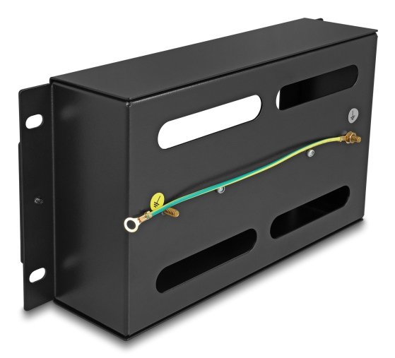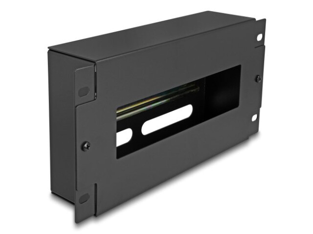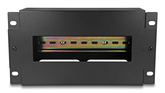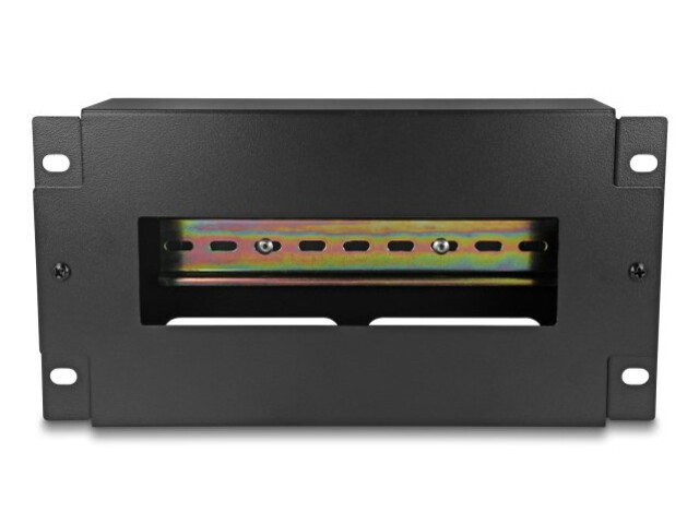 Diese Schutzleiste mit integrierter Hutschiene von Delock kann zum Einbau in einen 10″ Netzwerkschrank verwendet werden und wird als Montagesystem z. B. für Stromversorgungen, Schraubklemmen und Schnittstellenmodulen angewendet.