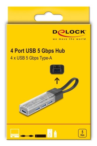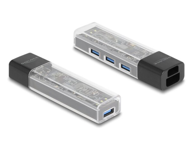 DeLOCK 64335 Schnittstellen-Hub USB 3.2 Gen 1 (3.1 Gen 1) Type-A + Type-C 5000 Mbit/s Schwarz, Transparent