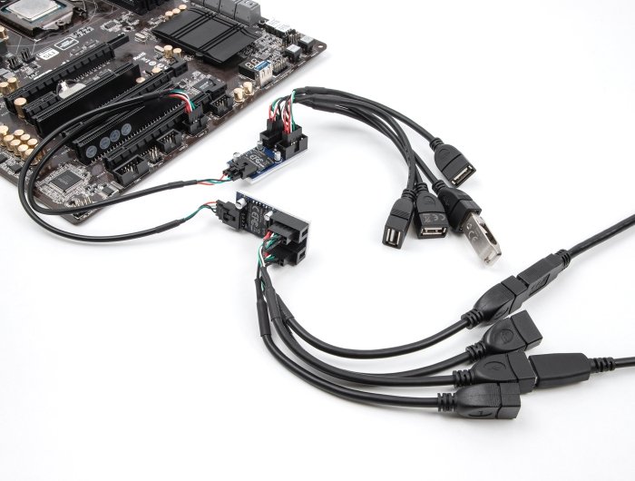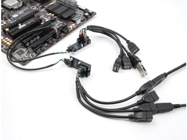 Der Hub kann im PC Gehäuse verwendet werden oder die USB Anschlüsse werden nach außen geführt und bieten somit zusätzliche Anschlüsse außerhalb des PC Gehäuses.