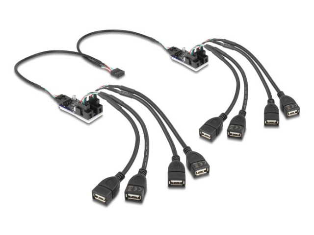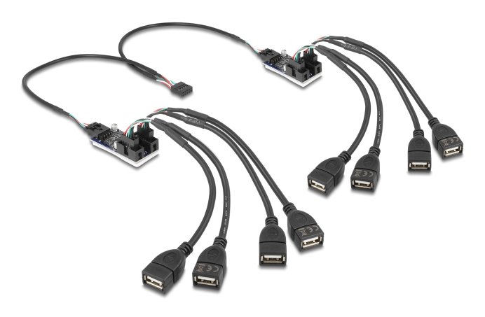 Dieser USB Hub von Delock kann an einen internen USB Port des Mainboards angeschlossen werden und stellt bis zu acht USB 2.0 Typ-A Anschlüsse zur Verfügung. Somit dient dieser Hub als 1 zu 8 Erweiterung.
