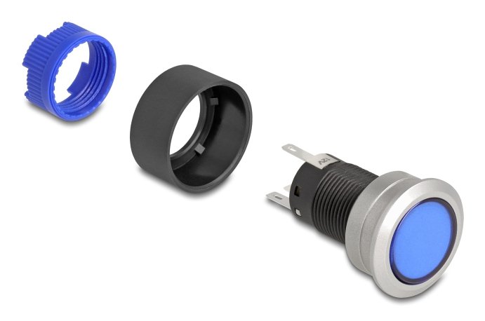 DeLOCK 22049 Elektroschalter Drucktasten-Schalter Schwarz, Blau, Silber