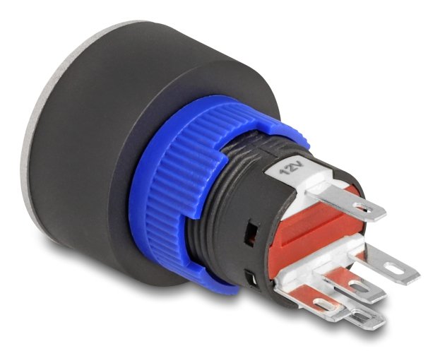 DeLOCK 22047 Elektroschalter Drucktasten-Schalter Schwarz, Blau, Rot, Silber