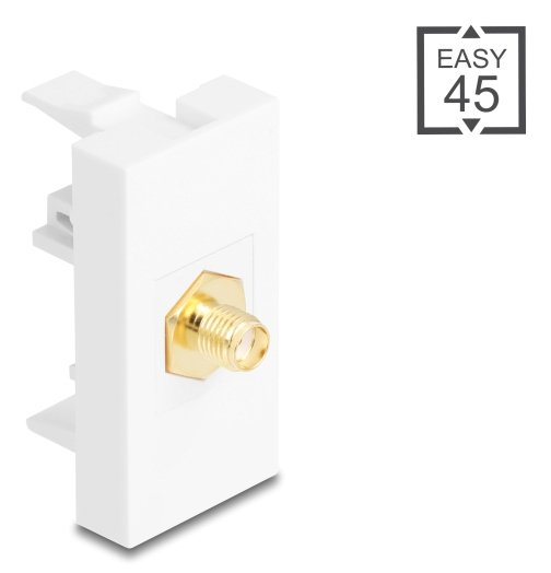 Dieses Easy 45 Modul von Delock stellt einen SMA Anschluss zur Verfügung und wird an dem Delock Easy 45 Modul System befestigt. Durch den einfachen Einrastmechanismus sitzt das Modul fest an seinem Platz und lässt sich bei Bedarf problemlos entfernen.