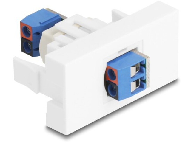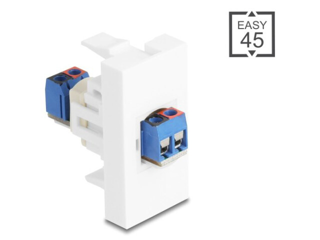 Dieses Easy 45 Modul von Delock stellt einen Terminalblock 2 Pin Anschluss zur Verfügung und wird an dem Delock Easy 45 Modul System befestigt. Durch den einfachen Einrastmechanismus sitzt das Modul fest an seinem Platz und lässt sich bei Bedarf problemlos entfernen.