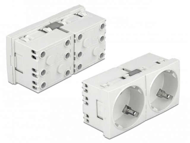 Diese Schutzkontakt-Steckdose von Delock stellt zwei CEE 7/3 Stromanschlüsse zur Verfügung. Durch den einfachen Einrastmechanismus sitzt die Steckdose fest an ihrem Platz und lässt sich bei Bedarf problemlos entfernen.