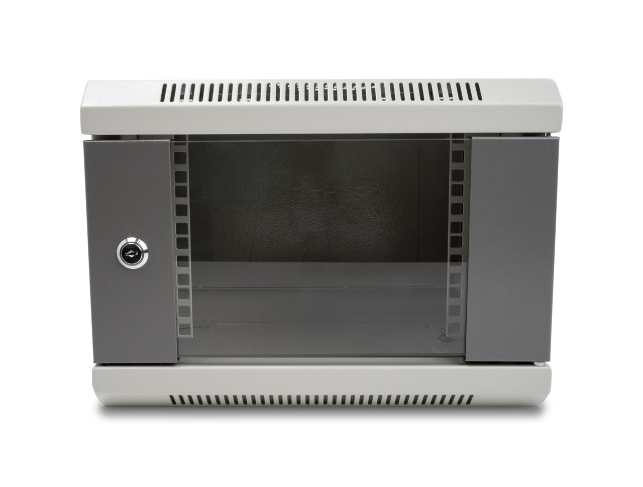 Der Netzwerkschrank kann abgeschlossen werden, um für mehr Sicherheit zu sorgen. Das Sichtfenster gewährt jederzeit einen Einblick in das Innere des Netzwerkschrankes.