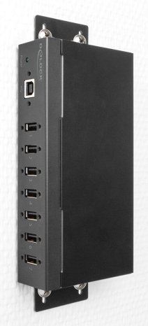 Zudem wird der Hub mit Wandmontageblechen und einer Hutschienenhalterung geliefert, was ihn perfekt zur Installation im industriellen Umfeld macht.