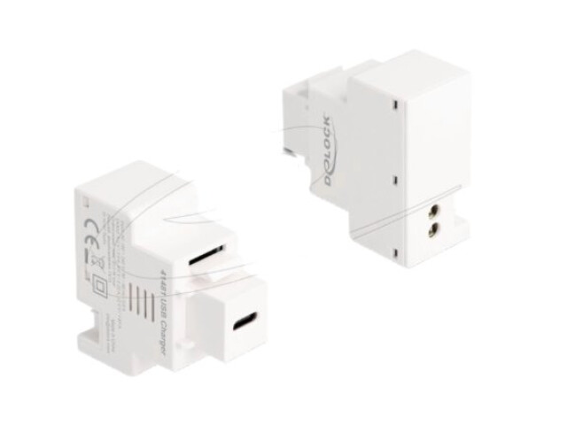 Dieses Modul von Delock stellt einen USB Type-C™ Power Delivery (PD) Ladeport zur Verfügung. Der USB Anschluss unterstützt gängige Schnellladeprotokolle. Angeschlossene Geräte können mit einer Leistung bis zu 20 W geladen werden. Durch die standardisierten Abmessungen ist es zur einfachen Snap-In Montage in verschiedene Halterungen, wie z. B. Keystone Patchpanel, Dosen oder Gehäuse geeignet.