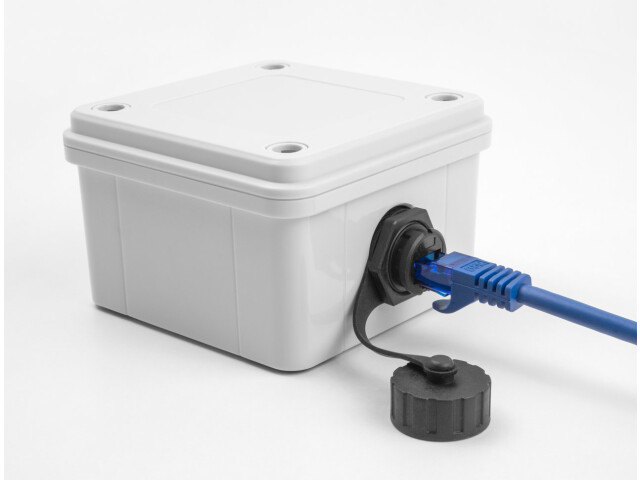 Die Verschlusskappe schützt die RJ50 Buchse vor Feuchtigkeit, Beschädigung und Verschmutzung im Außenbereich.