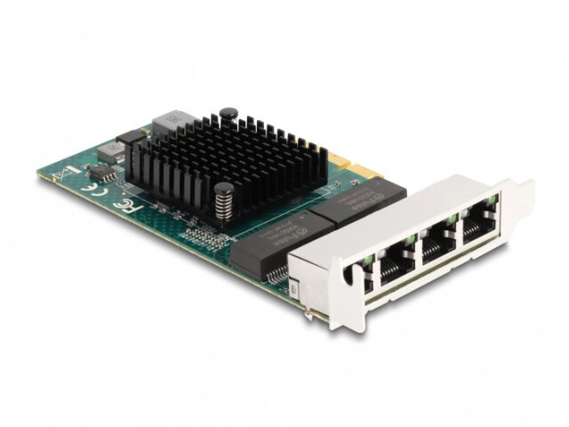 Die PCI Express Karte von Delock bietet vier Netzwerkanschlüsse mit einer Übertragungsrate von bis zu 1000 Mbps.