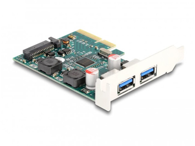 Die PCI Express Karte von Delock erweitert den PC um zwei externe USB 10 Gbps Ports. An die Karte können verschiedene USB Typ-A Geräte, wie z. B. Docking Stationen, Card Reader, externe Gehäuse etc., angeschlossen werden. Die Karte ermöglicht eine Datentransferrate von 10 Gbps an beiden Ports, wenn diese gleichzeitig benutzt werden.