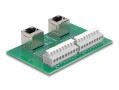 Dieser Adapter von Delock kann zum Anschluss diverser Netzwerkgeräte verwendet werden. Über den Terminalblock werden Litzen mit abisolierten Enden werkzeugfrei angeschlossen.