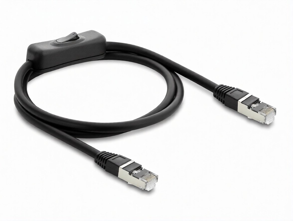 Der Schalter sitzt direkt am Kabel und trennt mit einem einfachen Klick die aktive Verbindung – ideal für IT-Umgebungen, Sicherheitsanwendungen oder den energiesparenden Betrieb von Netzwerkgeräten.