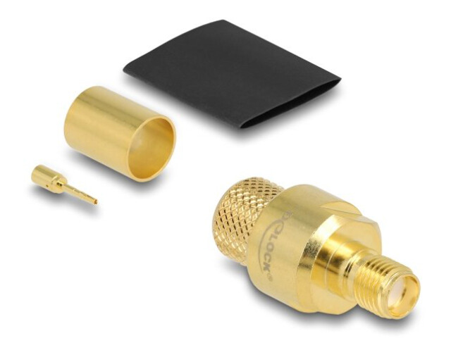 Diese Buchse inklusive passendem Schrumpfschlauch von Delock eignet sich zur Verbindung von Komponenten der Hochfrequenztechnik.