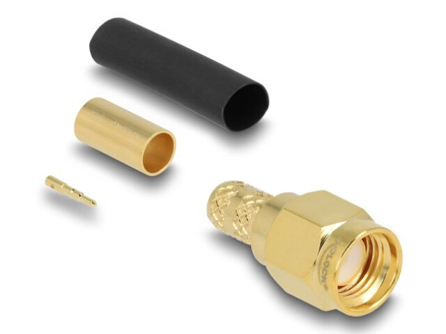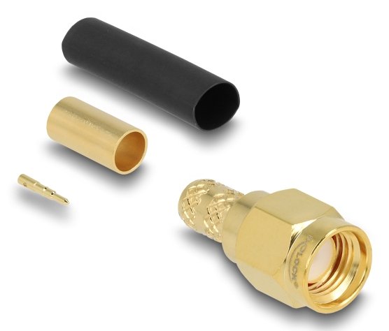 Dieser Stecker inklusive passendem Schrumpfschlauch von Delock eignet sich zur Verbindung von Komponenten der Hochfrequenztechnik.