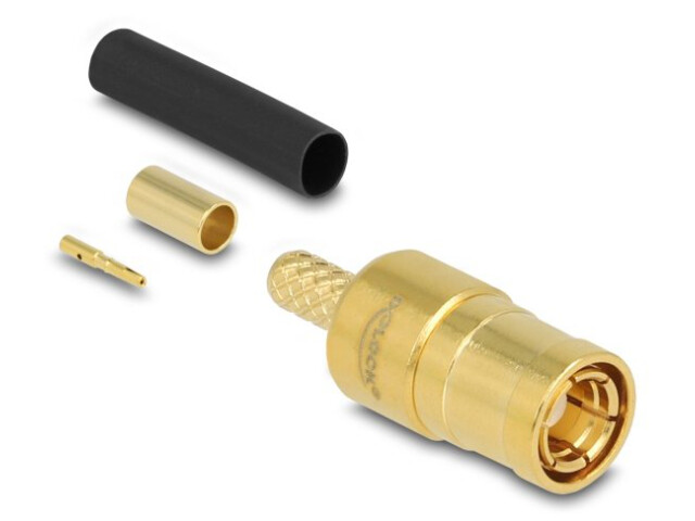 Dieser Stecker inklusive passendem Schrumpfschlauch von Delock eignet sich zur Verbindung von Komponenten der Hochfrequenztechnik.