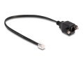Dieses RJ10 Kabel von Delock kann zur Verlängerung und zum Anschluss z. B. von Telefonhörerleitungen verwendet werden. Die schraubbare RJ10 Einbaubuchse kann z. B. an einem Slotblech oder einem Gehäuse mit entsprechender Aussparung befestigt werden.