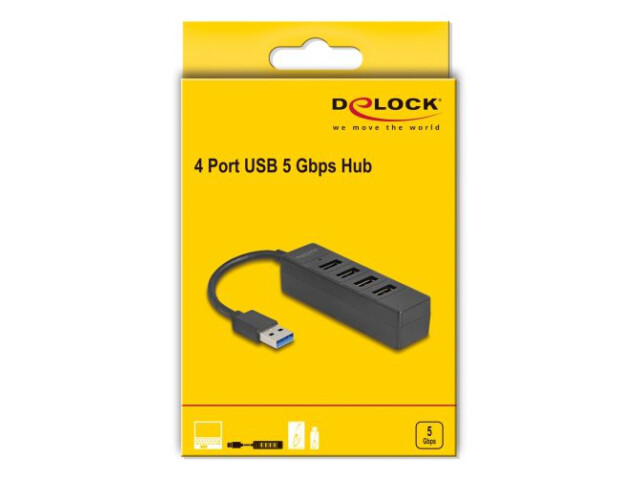 DeLOCK 64350 Schnittstellen-Hub USB 3.2 Gen 1 (3.1 Gen 1) Type-A 5000 Mbit/s Schwarz