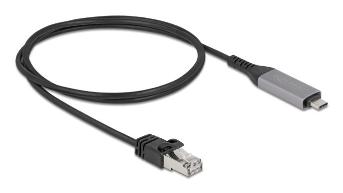 Dieses USB auf LAN Kabel von Delock ermöglicht eine stabile, kabelgebundene Netzwerkverbindung zu einem PC oder Notebook mit USB Type-C™ Anschluss.
