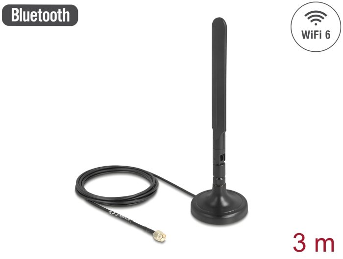 Diese WiFi 6 Antenne von Delock ermöglicht die Nutzung der WiFi Frequenzbereiche im Innenbereich.