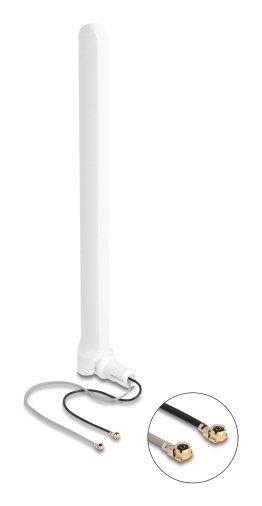 Diese Doppelantenne von Delock besitzt zwei physisch getrennte Sende- und Empfangseinheiten für WiFi 6 im 2,4 GHz und 5 GHz Bereich. Sie kann an ein Gerät mit I-PEX Inc., MHF® I Anschluss angeschlossen werden, um Signale im Innenbereich zu empfangen und zu senden.