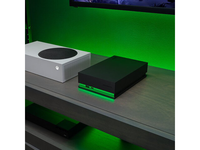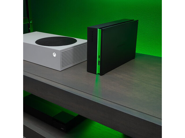Tauchen Sie mit der Game Drive Hub for Xbox ganz und gar in Ihr Spiel ein. 8 TB Speicher bieten Platz für die ultimative Spielesammlung und das kühne Design des Hubs ist die perfekte Ergänzung zu Ihrem Xbox-Setup. Die integrierte LED-Leiste taucht Ihr Gaming Center in Xbox-Grün und zwei USB-C- und USB-A-Anschlüsse an der Vorderseite dienen zum Laden Ihrer wichtigsten Geräte.