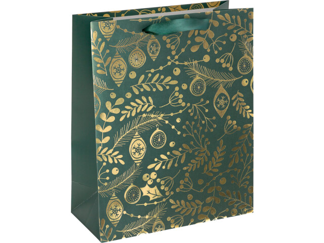 Geschenktasche Large, Golden ornaments on green, matte Oberfläche,