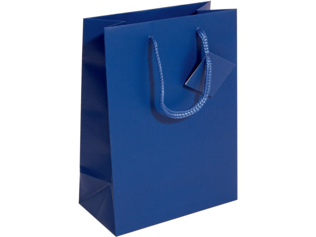 Geschenktasche Small, ultramarinblau mit Mattlack und Geschenkeanhänger