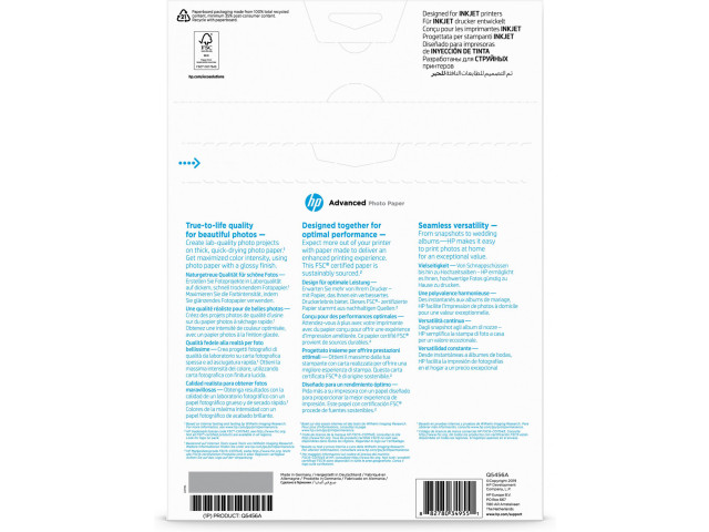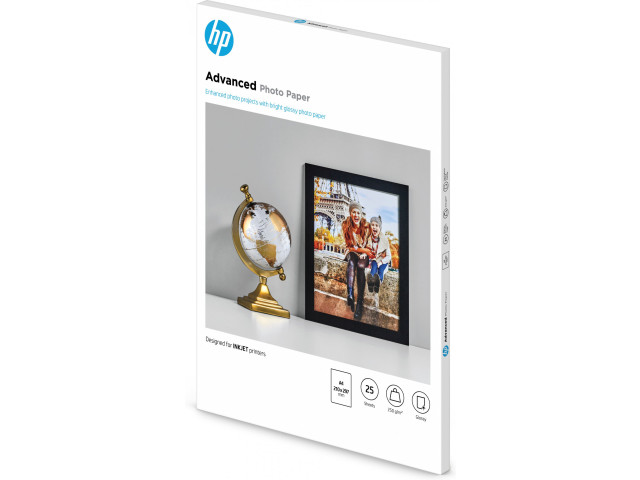 HP Lesklý fotografický papír Advanced Photo Paper, 250 g/m2 – 25 listů / A4 / 210 mm x 297 mm Fotopapier Schwarz, Blau, Weiß Glanz
