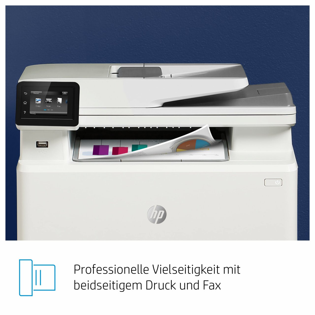 Zeit bis zur Ausgabe der ersten Seite und Kopiergeschwindigkeit gemessen nach ISO/IEC 29183, ausgenommen sind die ersten Testdokumente. Weitere Informationen unter http://www.hp.com/go/printerclaims. Die genaue Geschwindigkeit variiert je nach Systemkonfiguration, Softwareanwendung, Treiber und Komplexität des jeweiligen Dokuments.