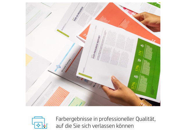 Die genannte Reichweite wurde gemäß ISO/IEC 19798 bei kontinuierlichem Druck ermittelt. Die tatsächliche Reichweite kann in Abhängigkeit von den gedruckten Bildern und anderen Faktoren erheblich abweichen. Weitere Informationen finden Sie unter http://www.hp.com/go/learnaboutsupplies.