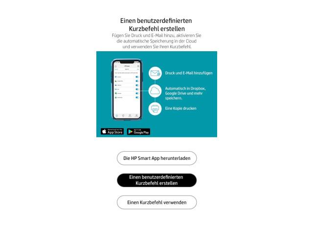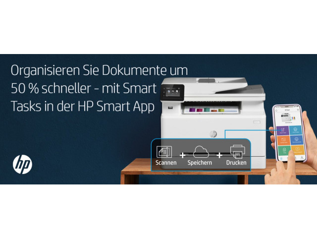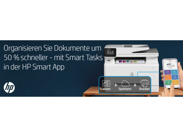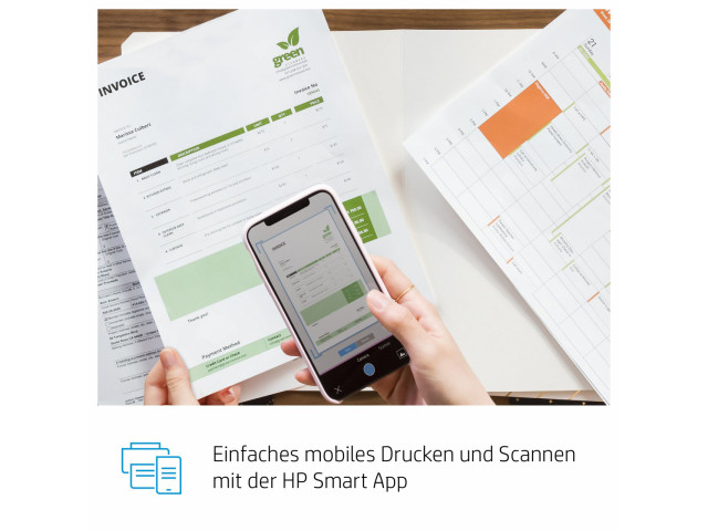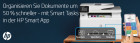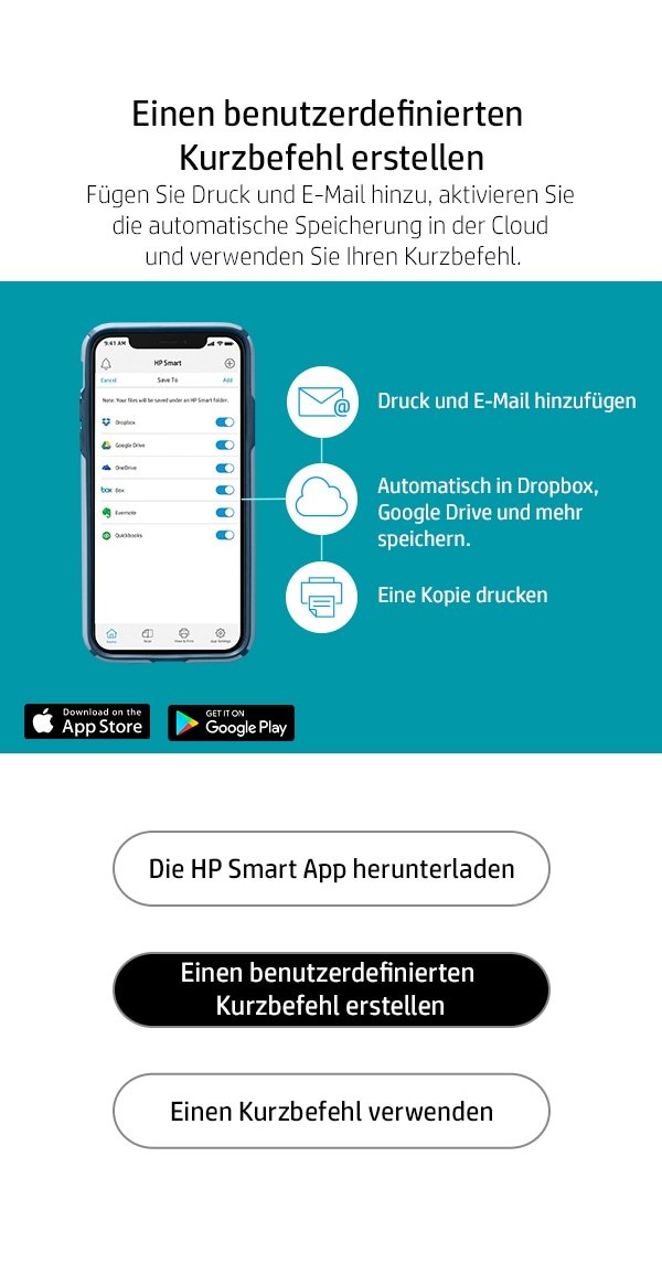 [5] Basierend auf internen Tests von HP. Durchschnittliche Zeitschätzung basierend auf: 1) heruntergeladener HP Smart App auf dem mobilen Gerät oder Desktop-PC, 2) Einrichtung der Smart Tasks Kurzbefehle, 3) Scan-Jobs, denen mindestens 2–3 Aufgaben zugeordnet sind (Scannen an E-Mail, Speichern und Umbenennen, Speichern in Cloud usw.). Vergleich der durchschnittlichen Zeitersparnis basierend auf der Verwendung von Drucker- und Desktop-Scansoftware zur Erledigung ähnlicher Scanaufgaben. Erfordert den Download der HP Smart App und einen unterstützten HP Drucker. Ausführliche Informationen zu den lokalen Druckanforderungen finden Sie unter http://www.hp.com/go/mobileprinting. Bestimmte Funktionen/Software sind nur in englischer Sprache verfügbar.