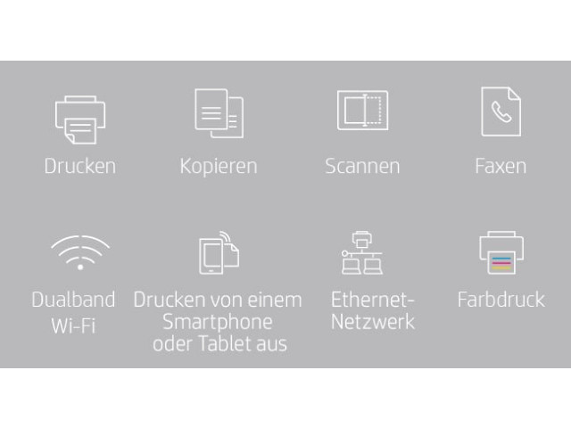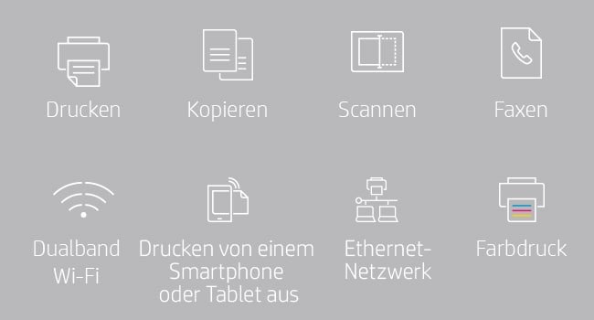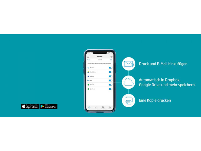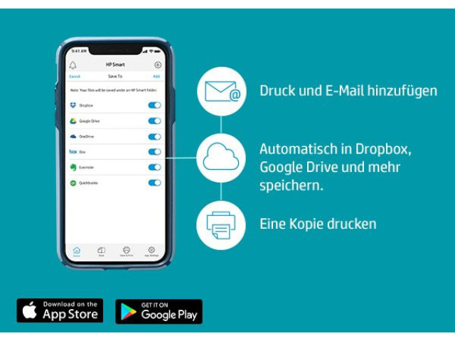 [3] Erfordert den Download der HP Smart App. Ausführliche Informationen zu den lokalen Druckanforderungen finden Sie unter http://www.hp.com/go/mobileprinting. Bestimmte Funktionen/Software sind nur in englischer Sprache verfügbar.