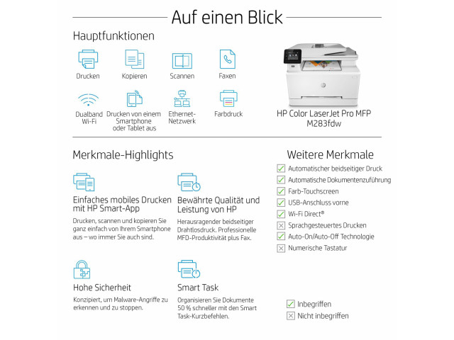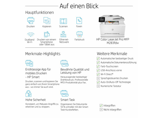 HP Color LaserJet Pro MFP M283fdw Laser A4 600 x 600 DPI 21 Seiten pro Minute WLAN