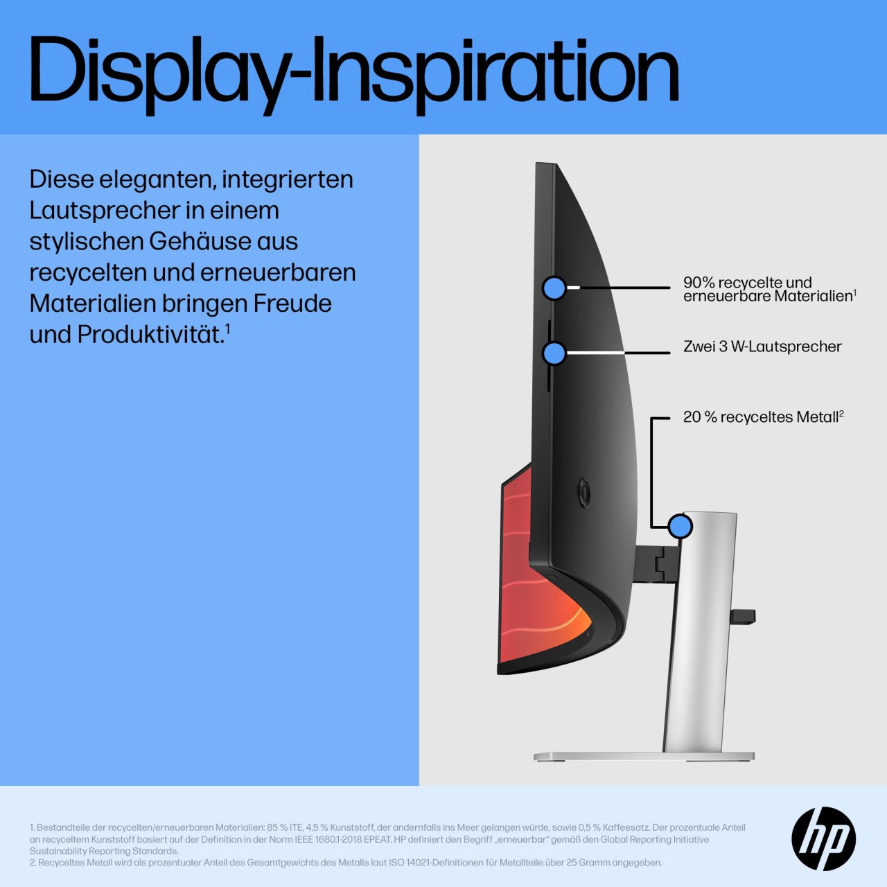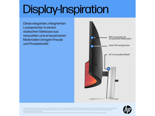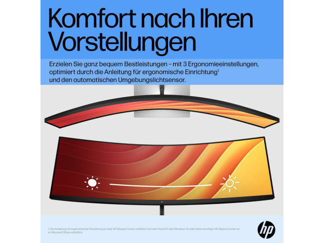 [3] Die ergonomische Einrichtungsanleitung ist über HP Display Center erhältlich. Für Host-PC ist Windows 10 oder höher erforderlich. HP Display Center ist im Microsoft Store erhältlich.