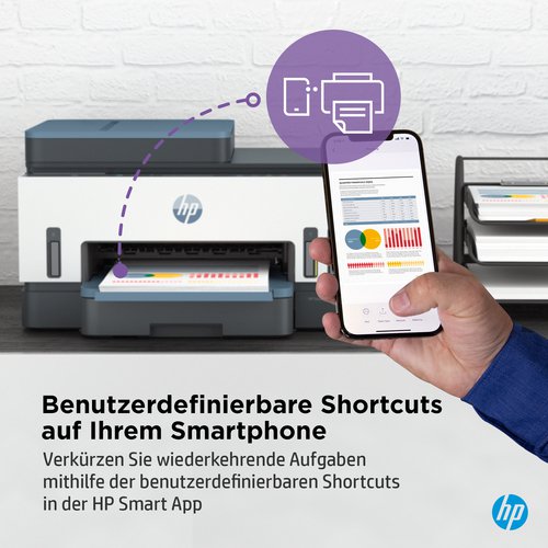 [3] Basierend auf internen Tests von HP. Durchschnittliche Zeitschätzung basierend auf: 1) heruntergeladener HP Smart App auf dem mobilen Gerät oder Desktop-PC, 2) Einrichten von Shortcuts, 3) Scan-Jobs, denen mindestens 2-3 Aufgaben zugeordnet sind (Scannen an E-Mail, Speichern und Umbenennen, Speichern in der Cloud usw.). Vergleich der durchschnittlichen Zeitersparnis basierend auf der Verwendung von Drucker- und Desktop-Scansoftware zur Erledigung ähnlicher Scanaufgaben. Erfordert den Download der HP Smart App und einen kompatiblen HP Drucker. Informationen zu den Anforderungen für lokales Drucken finden Sie unter https://www.hp.com/go/mobileprinting