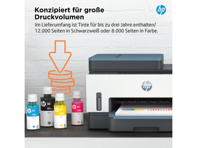 Bis zu 3 Jahre Garantieverlängerung bei Registrierung bei https://www.hp.com/go/SmartTank3yearswarranty. Vom Benutzer austauschbare Teile haben separate Garantiefristen.