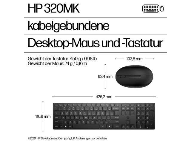 HP Wired Desktop 320MK Mouse and Keyboard Tastatur Maus enthalten USB Schwarz