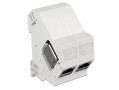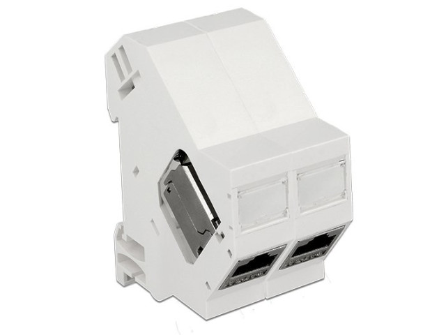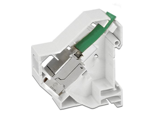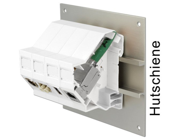 Diese Keystone Halterung von Delock kann an Hutschienen befestigt werden. Durch die standardisierten Abmessungen ist sie zur einfachen Snap-In Montage von einem Keystone Modul geeignet.