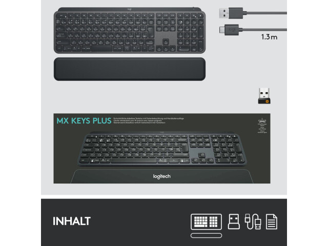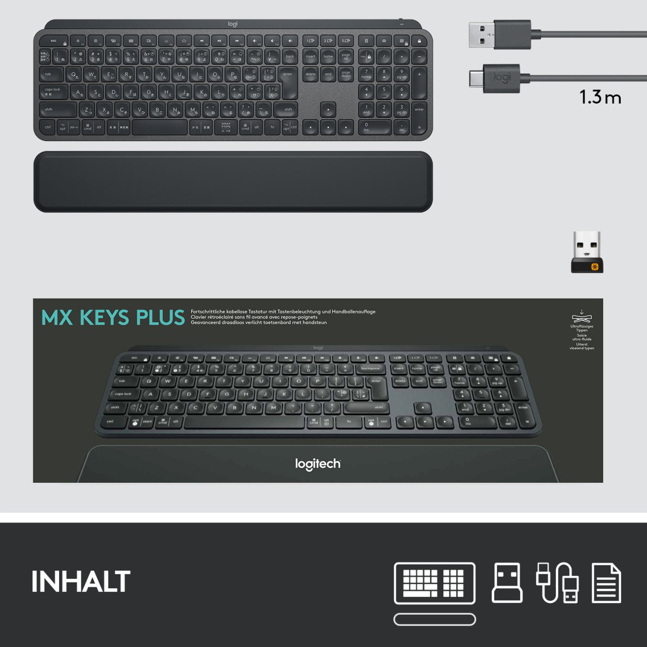 Logitech MX Keys Plus Tastatur Universal RF Wireless + Bluetooth QWERTY Englisch Graphit