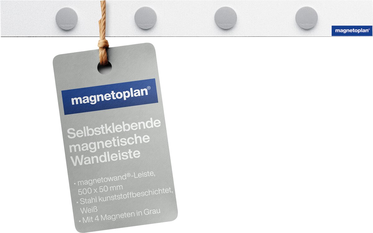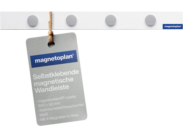 magnetowand®-Leiste zum Befestigen von Notizen, Memos, etc. Befestigung: selbstklebend auf glatten Untergründen. Farbe: weiß.