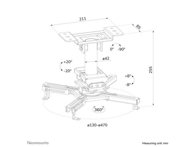 Die Neomounts CL25-530WH1 sind mit einem Easy-Release-System ausgestattet, welches die Installation erheblich vereinfacht. Die (De-)Installation des Projektors an der Projektor Halterung kann im Handumdrehen und von nur einer Person durchgeführt werden. Darüber hinaus ermöglicht die runde Stange eine einfache Installation an einer abgehängten Decke. Schließlich kann die Stange der Neomounts Projektor Halterung an der Deckenseite geneigt werden, sodass die Installation an einer schrägen Decke mühelos möglich ist. Die Befestigung der Halterung selbst ist robust und fest und daher vibrationsfrei.