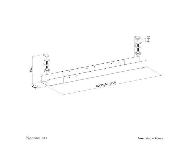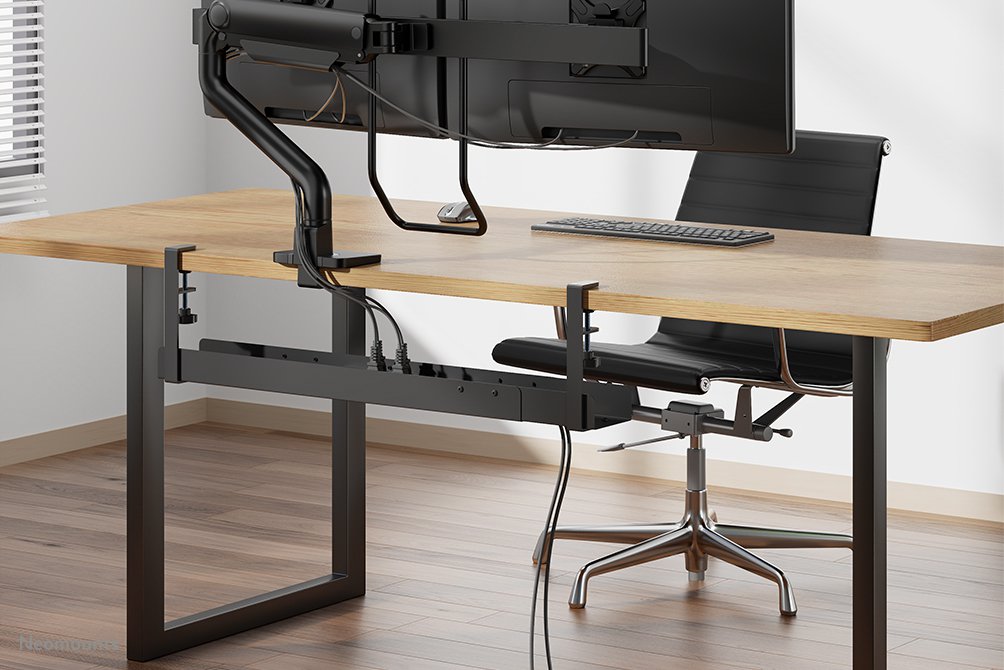 Schaffen Sie einen aufgeräumten und effizienten Arbeitsplatz mit der Kabelwanne ADS07-120BL. Das in der Breite verstellbare Design (80, 100 und 120 cm) bietet ausreichend Platz für mehrere Kabel, Steckdosen und mehr und ist daher für unterschiedliche Schreibtischbreiten geeignet. Das Klemmsystem sorgt für eine schnelle, werkzeuglose Montage, ohne dass Ihr Schreibtisch beschädigt wird. Die Kabelwanne eignet sich perfekt zum Führen und Verbergen von Kabeln und sorgt so für einen aufgeräumten und organisierten Arbeitsplatz.