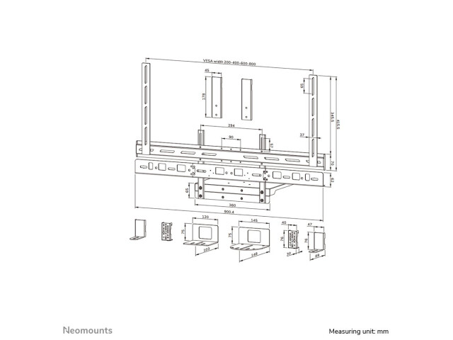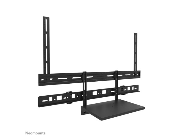 Das Neomounts AV60-500BL ist ein universelles Videobar- und Laptop-Regal-Kit für 43" Displays und größere Bildschirme, das VESA-Lochmuster von 200x200 bis 800x600 mm unterstützt. Das Kit ist auf Langlebigkeit und Vielseitigkeit ausgelegt, trägt Geräte mit einem Gewicht von bis zu 8 kg und kann entweder über oder unter dem Bildschirm installiert werden. Die mitgelieferte Laptopablage trägt bis zu 2,5 kg und bietet eine intelligente Lösung für Laptops, Notebooks, Tablets oder zusätzliches Zubehör. Sowohl die Videoleiste/Laptophalterung als auch die Halterungen der Rückplatte sind höhenverstellbar und bieten maximale Flexibilität.